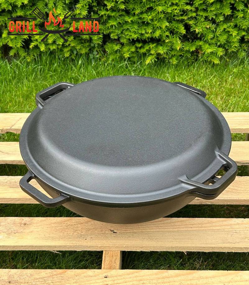 Produktinformationen "Kazan Gusseisen 12 Liter Robari Kasan mit Grillpfannendeckel aus Gusseisen Wok Asia"