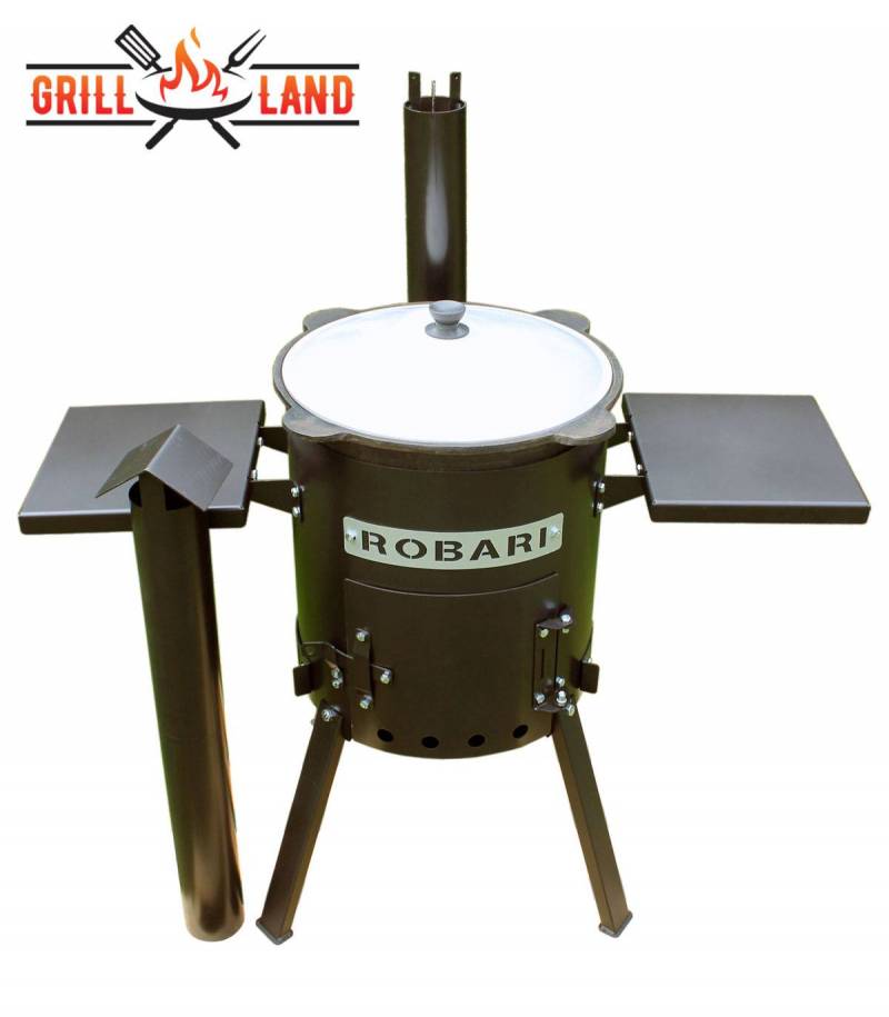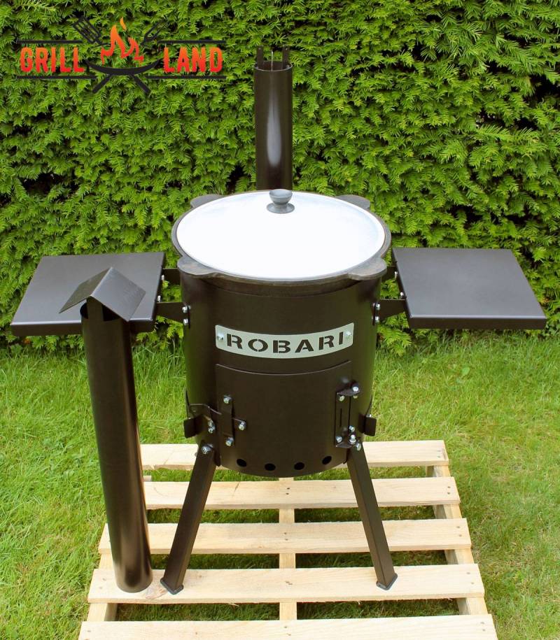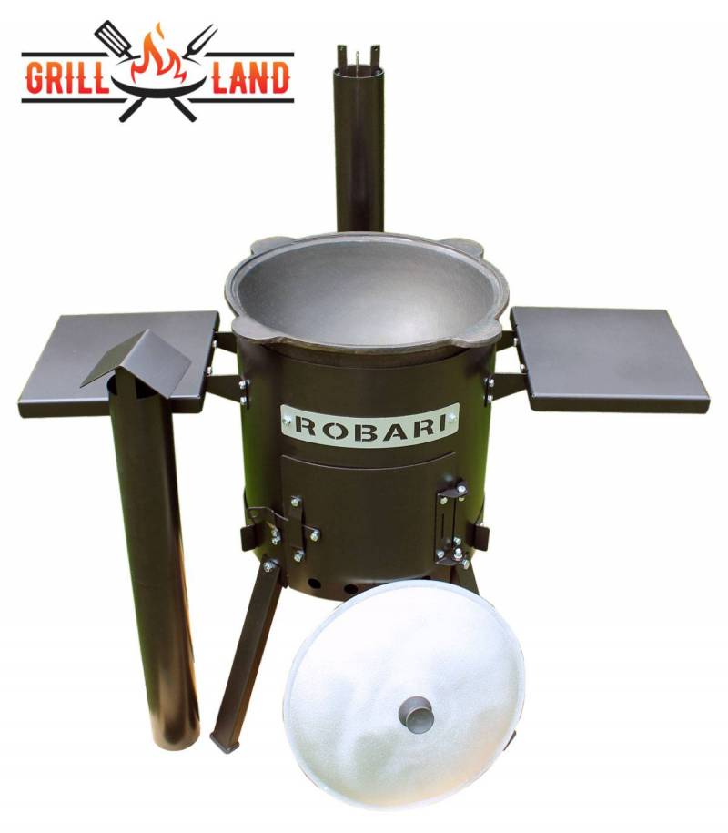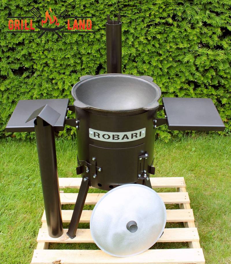 Bestellen Sie sich jetzt den SET Feuerofen UST36 mit 2 Ablagen und Schornstein mit Kazan usbekisch 10 Liter aus Gusseisen mit Alu-Deckel, Boden flach und genießen Sie gut gelaunt und perfekt ausgerüstet Ihre Kochergebnisse!