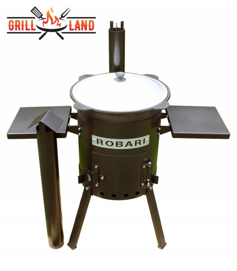 Produktinformationen: "SET Feuerofen UST36 mit Schornstein und 2 Ablagen mit Kazan usbekisch 12 Liter aus Gusseisen mit Aludeckel, Boden rund"
