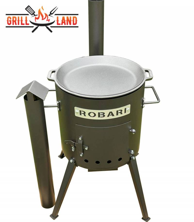 Bestellen Sie sich jetzt den SET Feuerofen mit Schornstein, Utschak US40E mit Pfannendeckel aus Gusseisen und genießen Sie gut gelaunt und perfekt ausgerüstet Ihre Kochergebnisse!