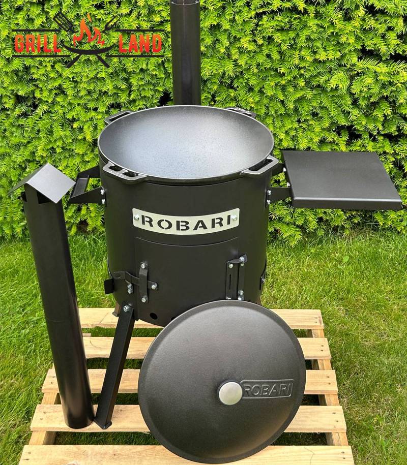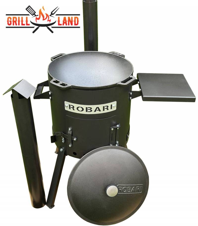SET Feuerofen UST40 mit Schornstein und 2 Ablagen mit Kazan Gusseisen 15 Liter Robari mit Deckel aus Gusseisen
