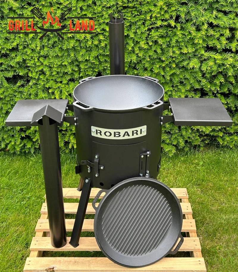 Produktinformationen: "SET Feuerofen UST40 mit Schornstein und 2 Ablagen mit Kazan Gusseisen 15 Liter Robari mit Grilldeckel aus Gusseisen"