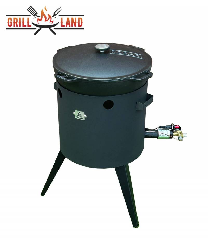 SET Gas-Feuerofen Utschak KOMFORT 37 cm, Stahl 3mm, mit 15 Liter Kazan Gusseisen Robari mit Deckel aus Gusseisen