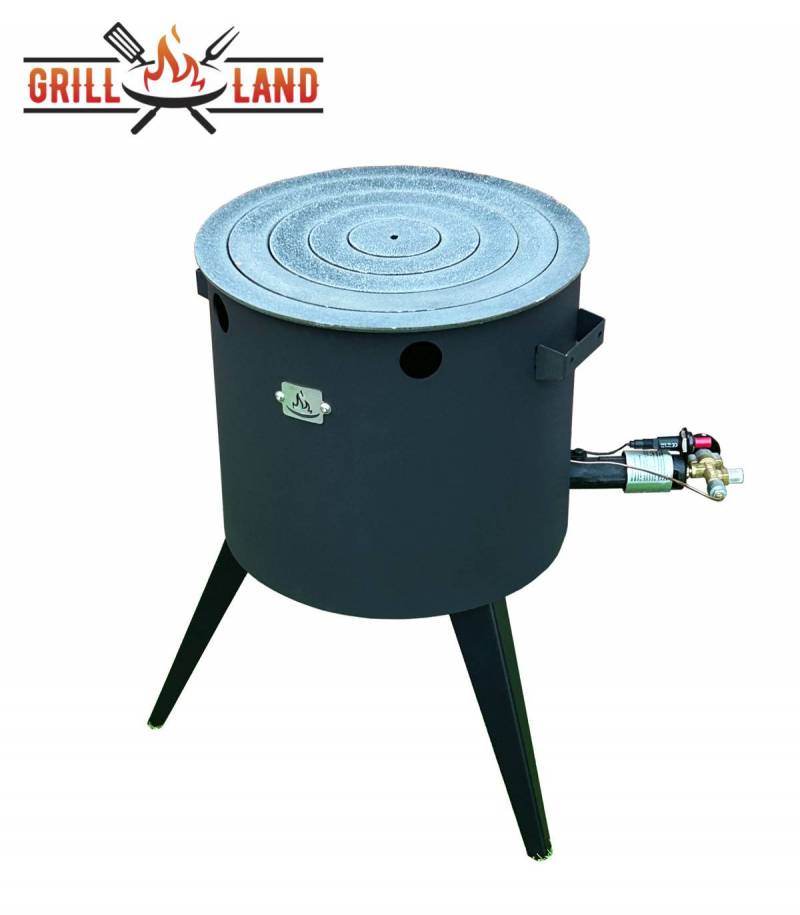 Feuerofen KOMFORT 37 cm, 3-Fuß Hockerkocher, 3 Adapter für Hockerkocher, Ofenringe aus Gusseisen.