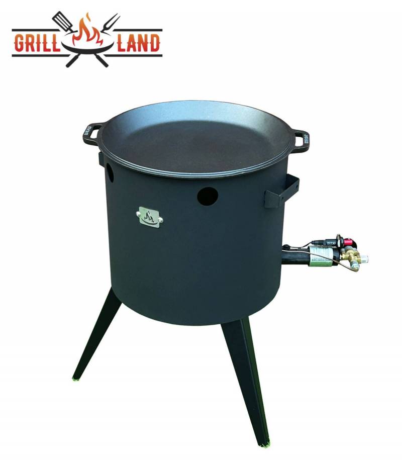SET Gas-Feuerofen Utschak KOMFORT 37 cm, Stahl 3mm, mit Pfannendeckel aus Gusseisen
