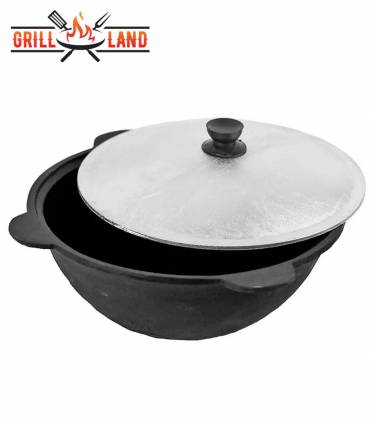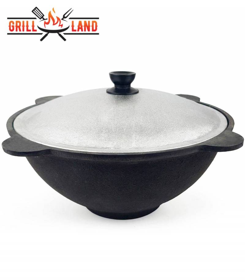 Kazan Usbekisch Asien 10 Liter aus Gusseisen mit Aludeckel, Boden flach: